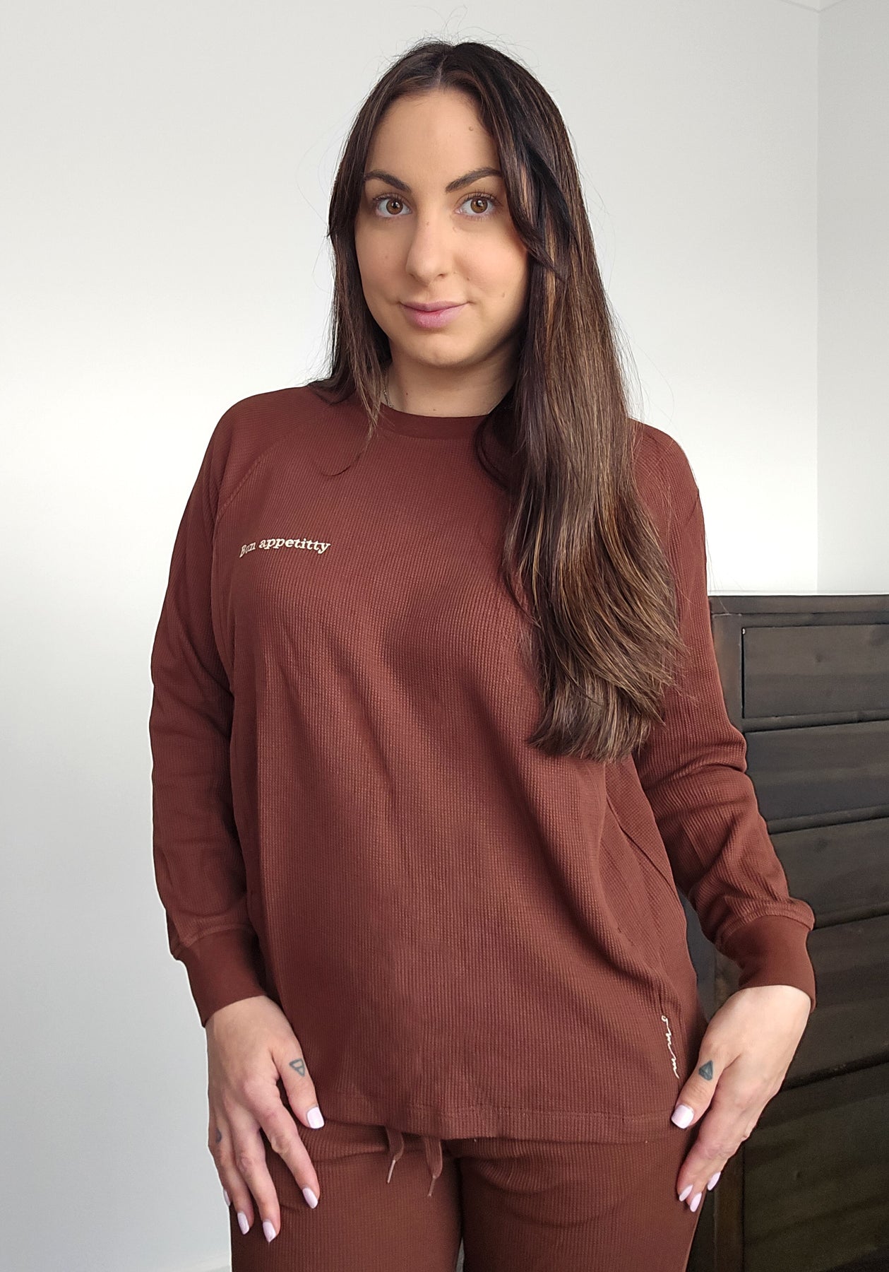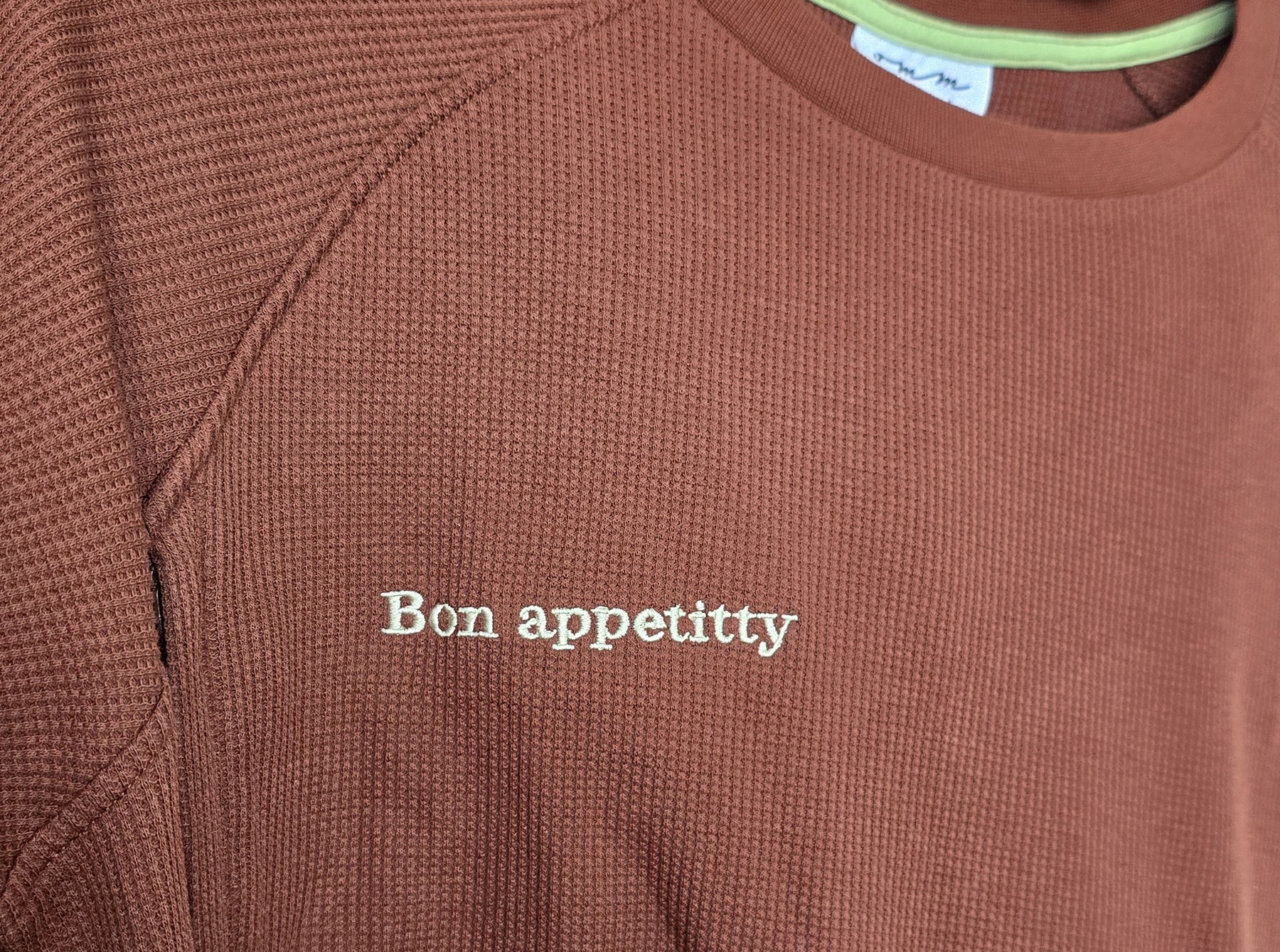 Bon Appetitty Embroidery detail will guarantee a conversation starter or giggles.